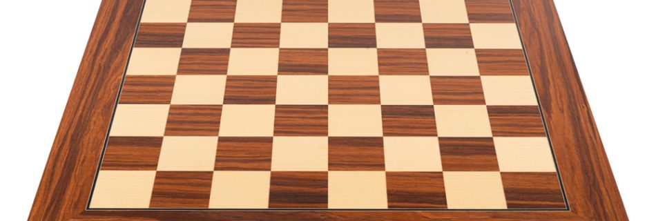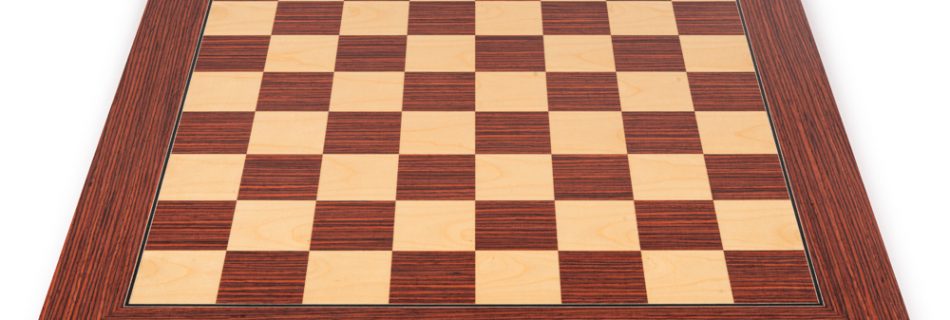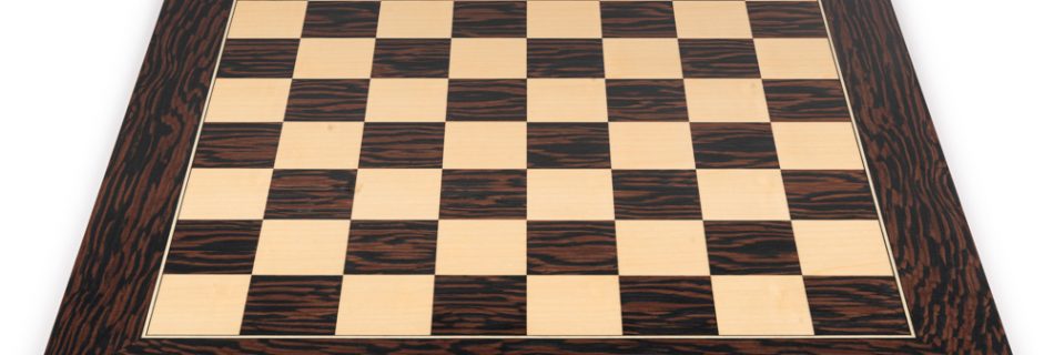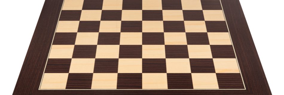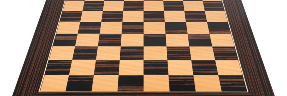 Tablero de ajedrez fabricado a mano. Este modelo combina los colores del elegante negro tintado de la madera de tulipie con el blanco marfil de la madera de sicomoro. Su superficie cuenta con un barniz mate que realza la riqueza de los tonos de la madera y le proporciona una suave textura para que las piezas de ajedrez se deslicen con precisión.